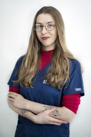 W przychodni pracuje jako technik weterynarii a po pracy zajmuje się zwierzęcą fotografią, pracuje głównie z psami schroniskowymi, żeby zwiększyć ich szanse na adopcje.